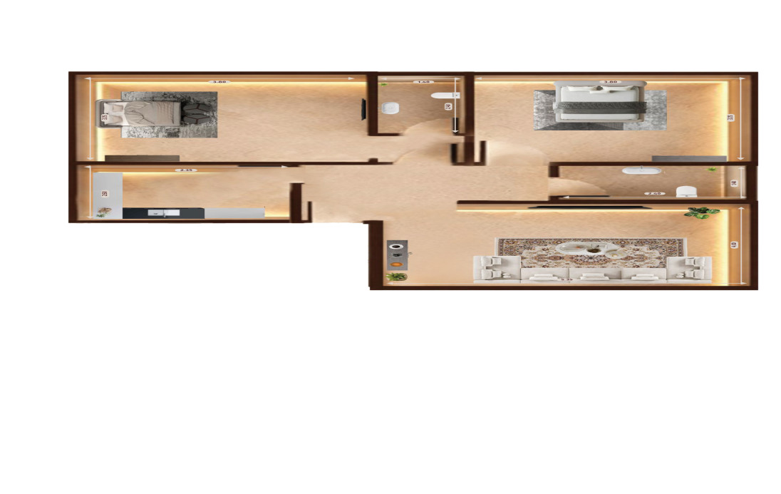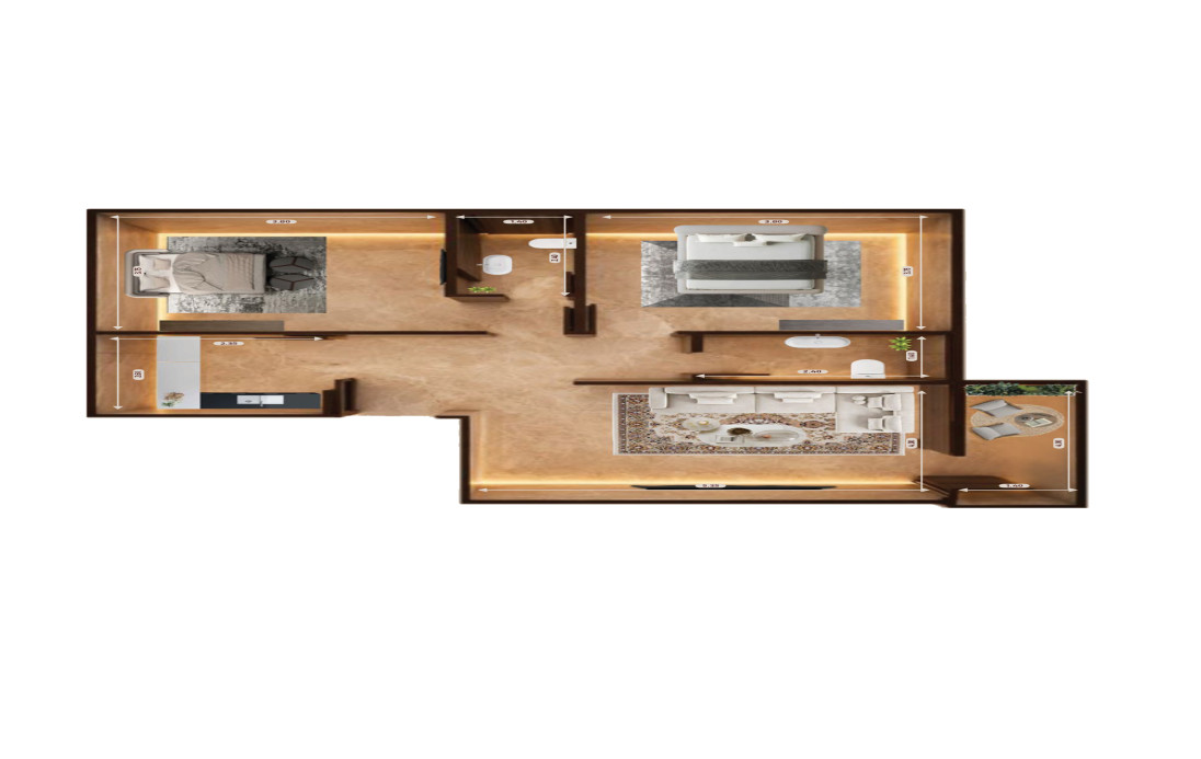 شقق غرفتين بمساحات تبدأ من 78 م² حتى 113 م²