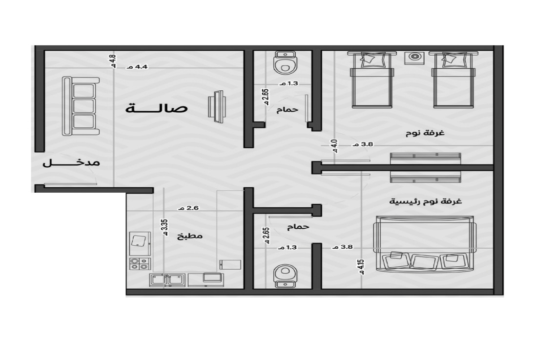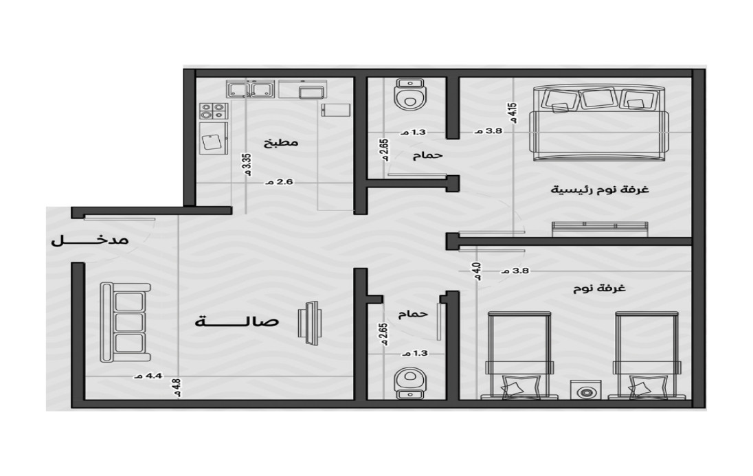 تتنوع الشقق بين غرفتين وثلاث غرف، مع توزيع مثالي للمساحات يراعي الراحة والخصوصية.