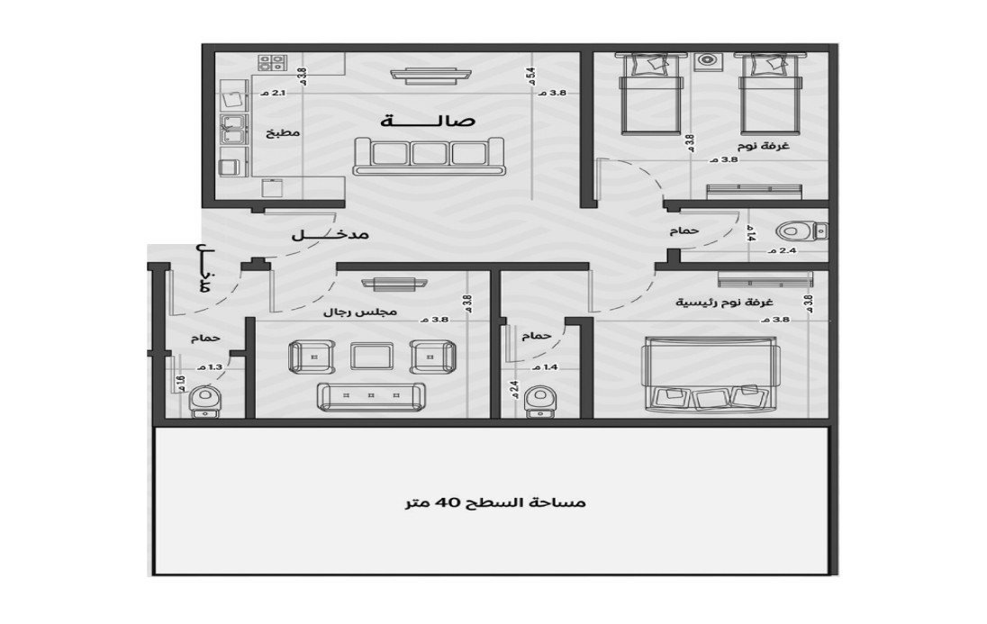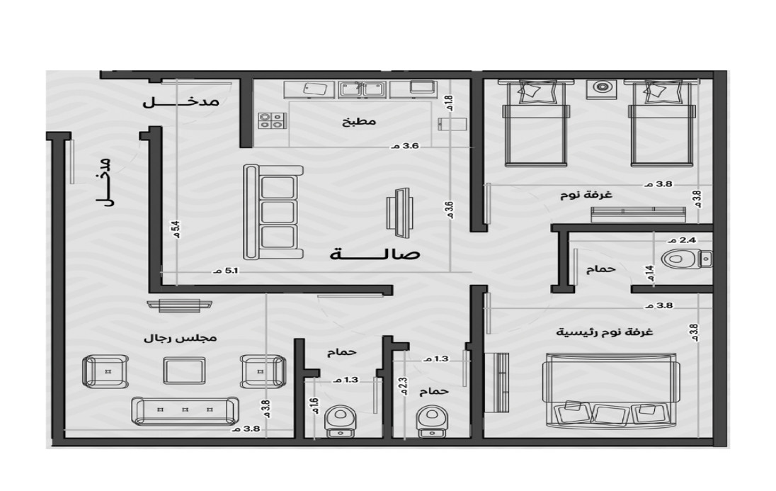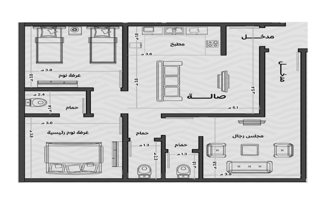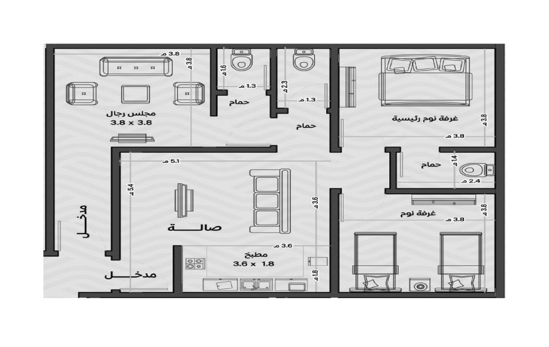 شقة ثلاث غرف للبيع بمساحات متوسطة تبدأ من ~ 300,000-320,000 ر.س