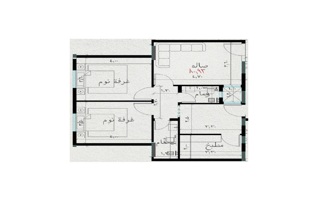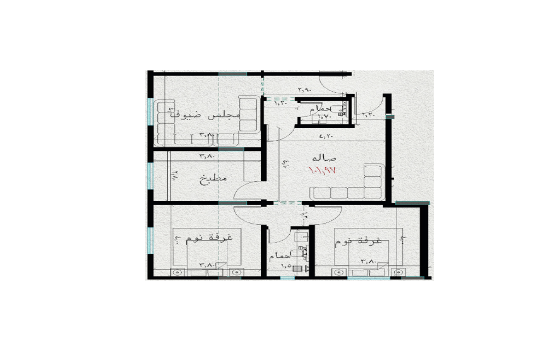 شقة 3 غرف (خلفية) – مساحة 101 م² السعر 479,000 ر.س