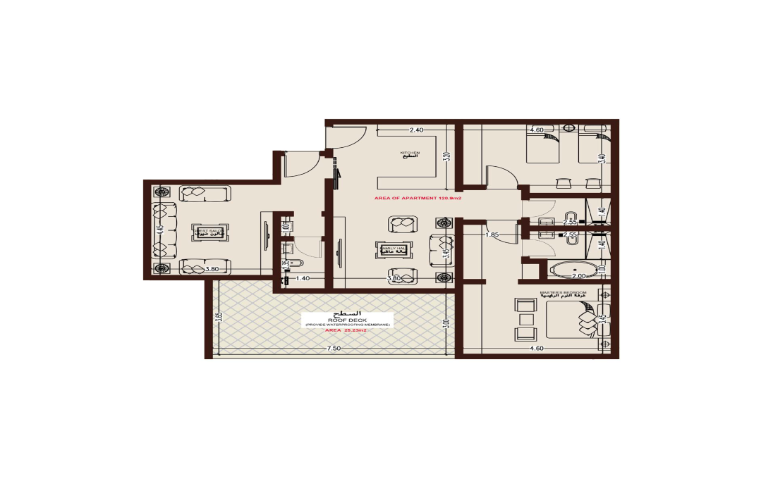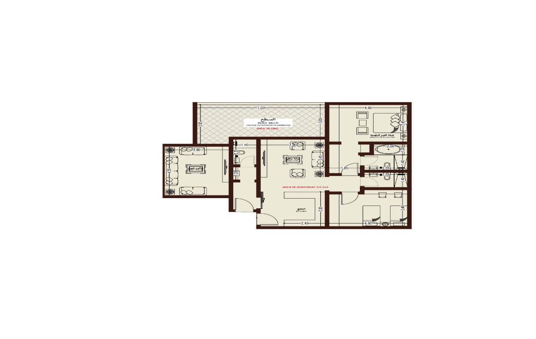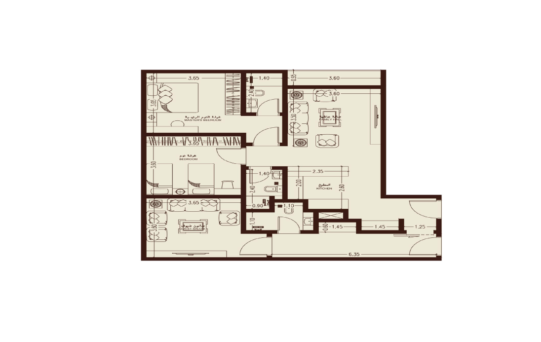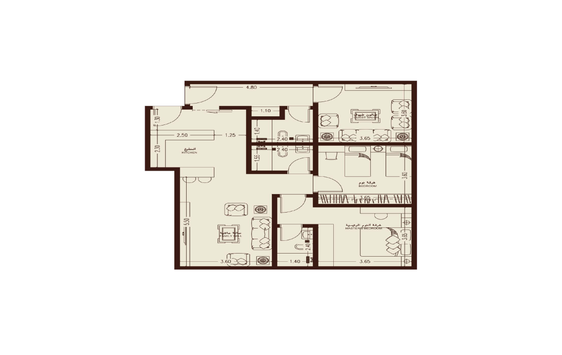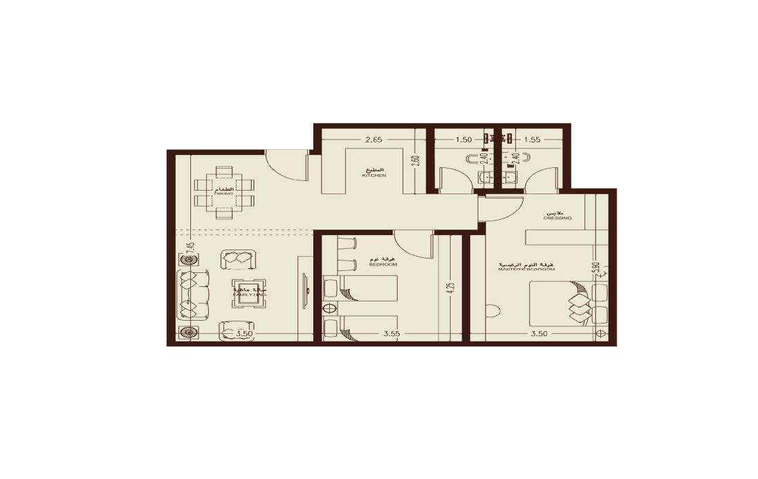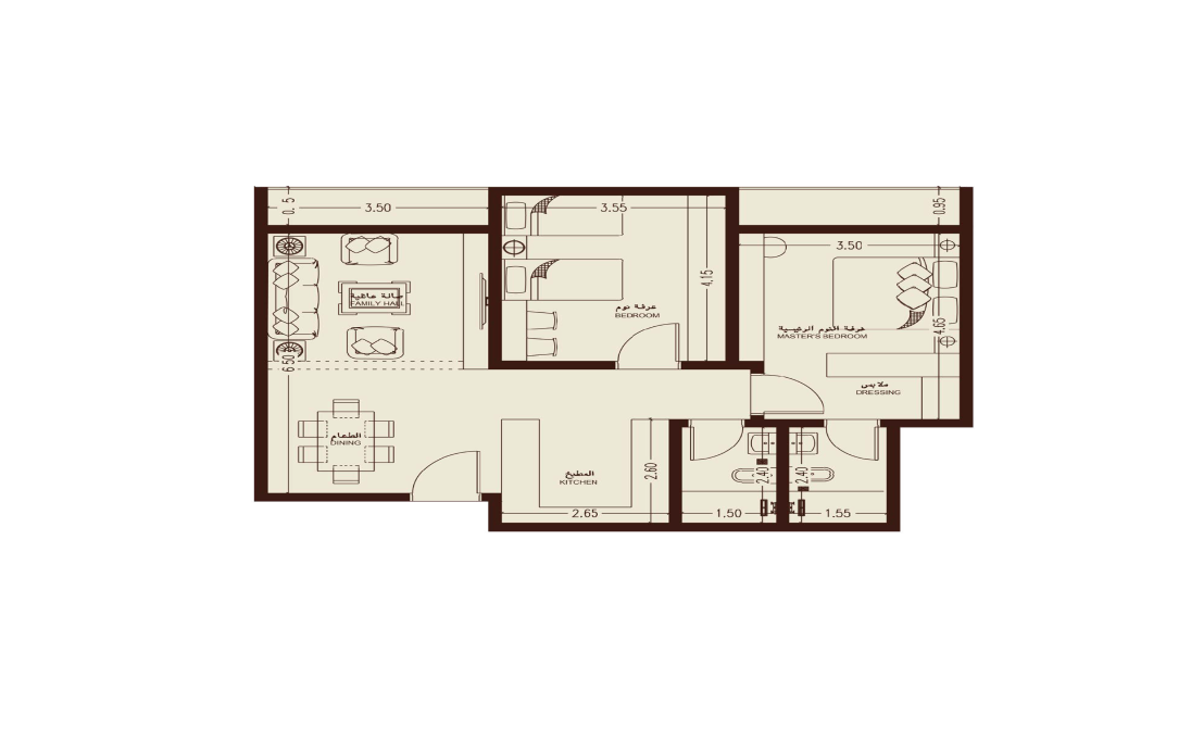 شقق ثلاث غرف بمساحة 112 م²