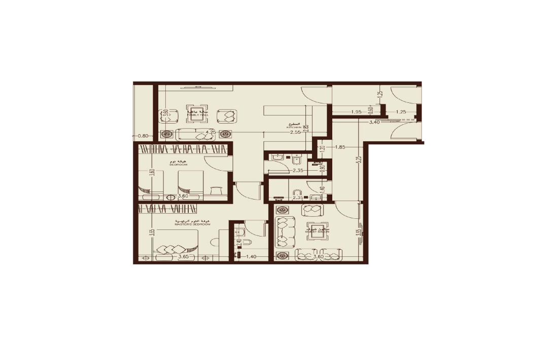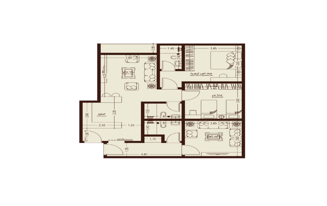شقق غرفتين بمساحة 92 م²