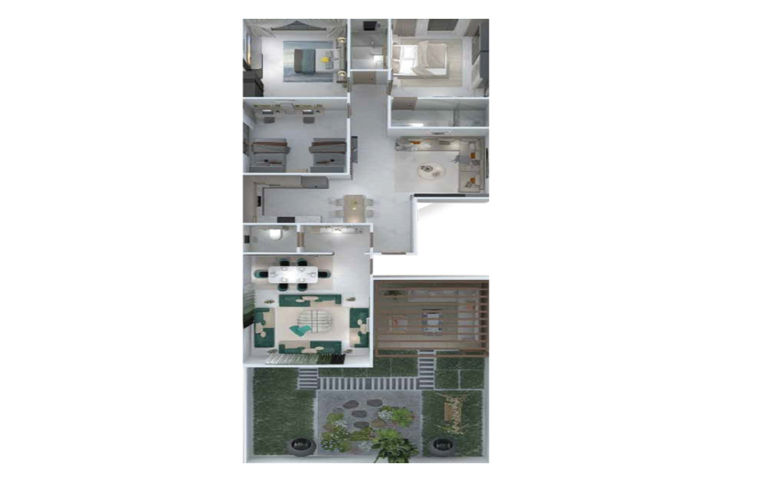 - المساحات: من 76م² (غرفتين) إلى 213م² (ملحق فاخر 5 غرف)