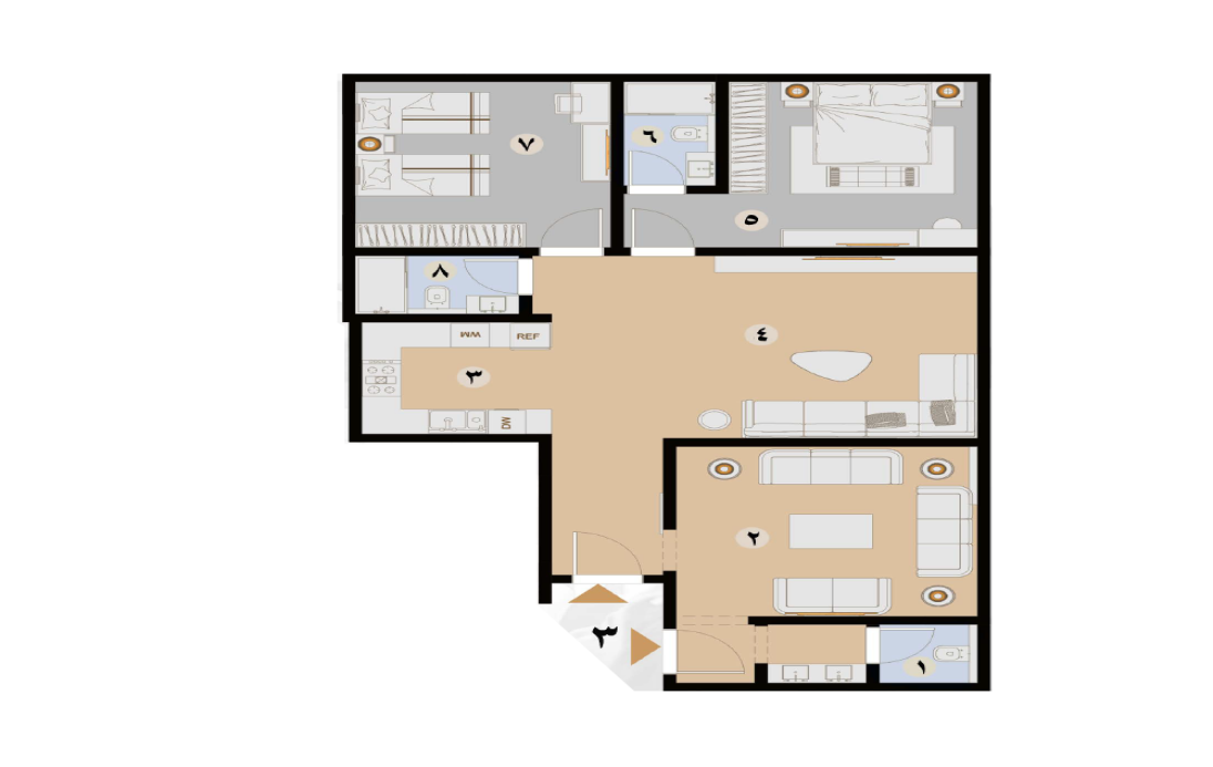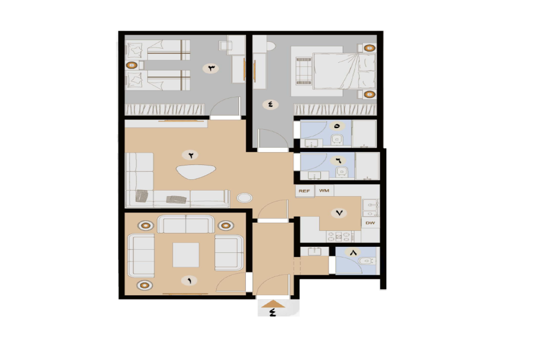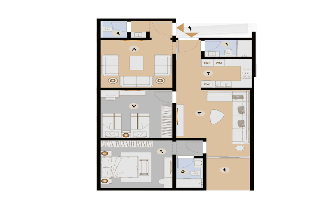 شقق بأربع غرف بمساحة 131 متر مربع.