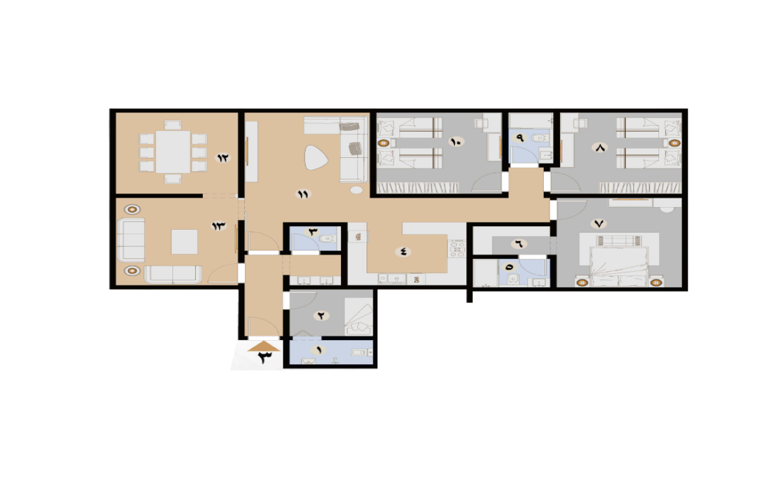 شقق بخمس غرف بمساحة 151 متر مربع.