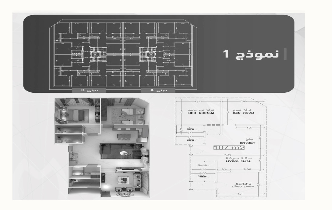 رونق 1: يضم وحدات بثلاث غرف نوم مثالية للعائلات المتوسطة والكبيرة.