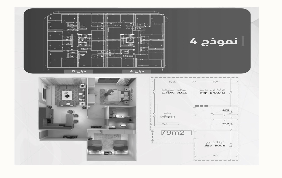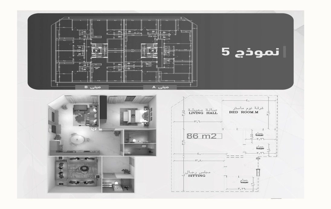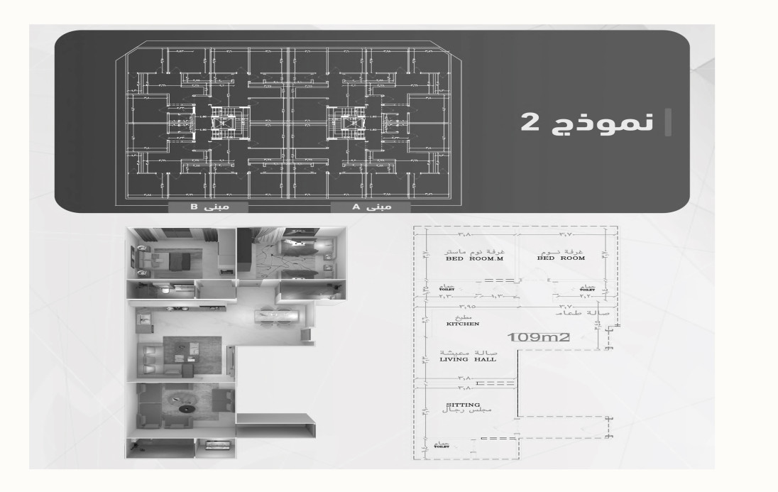 رونق 2: يحتوي على وحدات بغرفتين نوم مناسبة للأزواج الجدد أو المستثمرين.