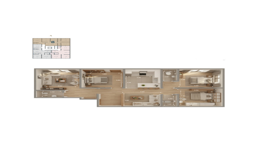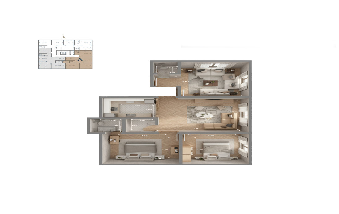 شقة 4 غرف (صالة – مطبخ – 2 دورات مياه)