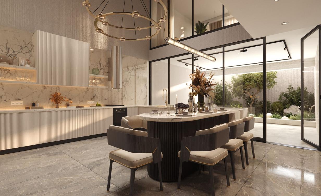 منطقة جلوس مطلة على المطبخ