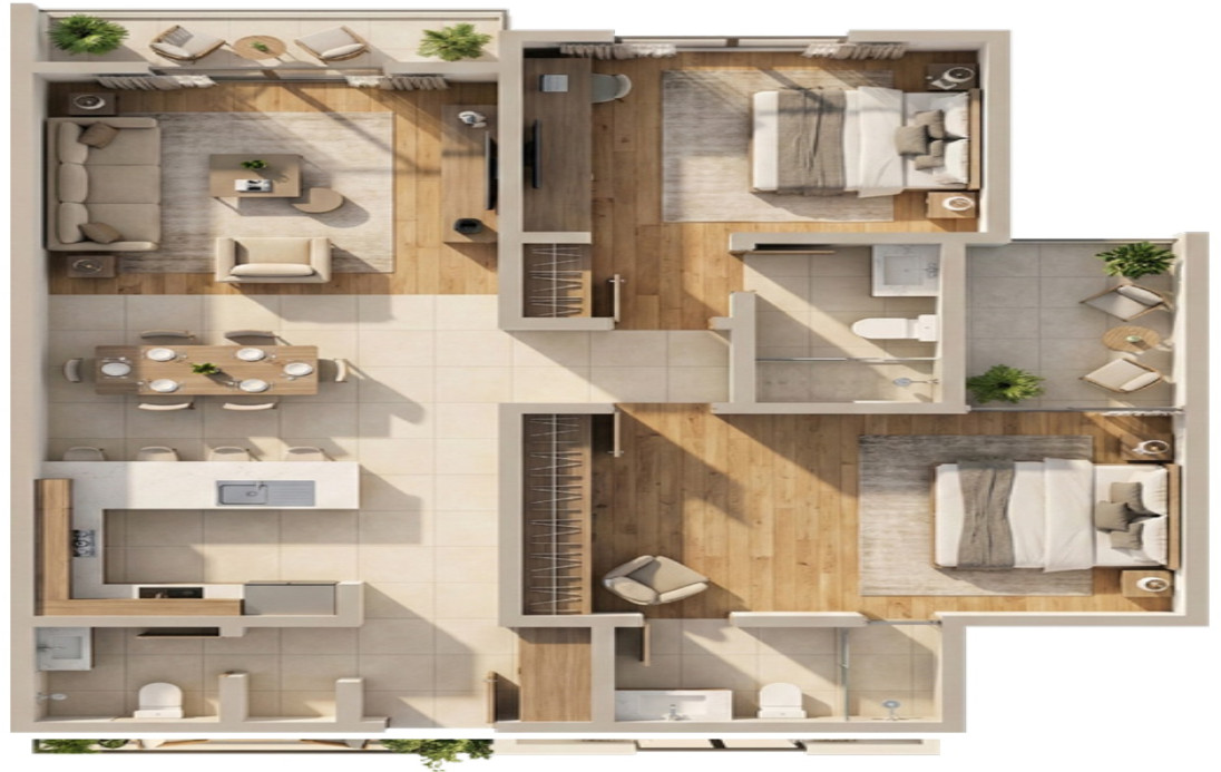 يتكون المشروع من ثلاث مبانٍ سكنية: