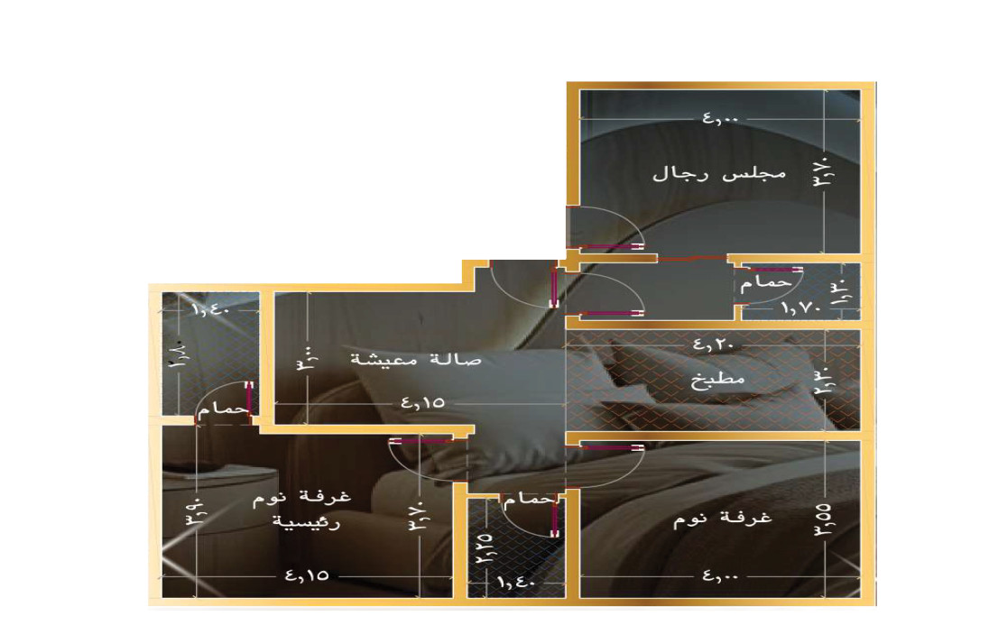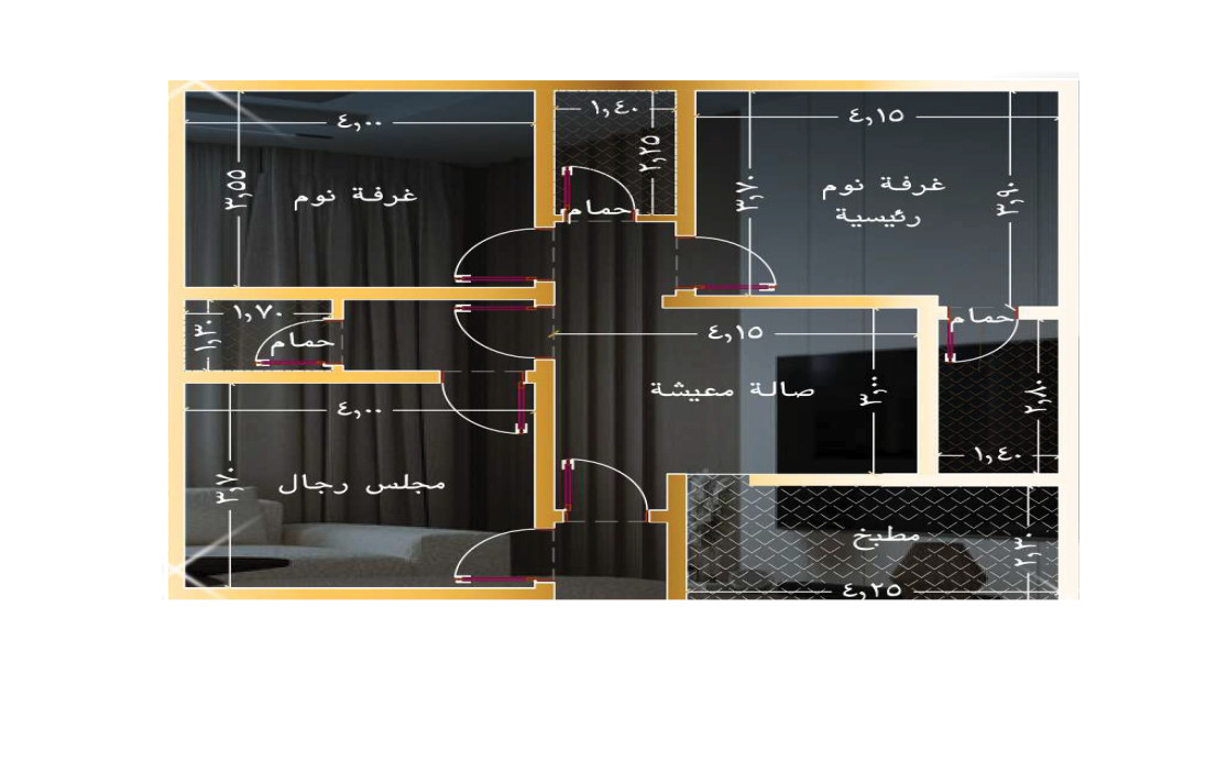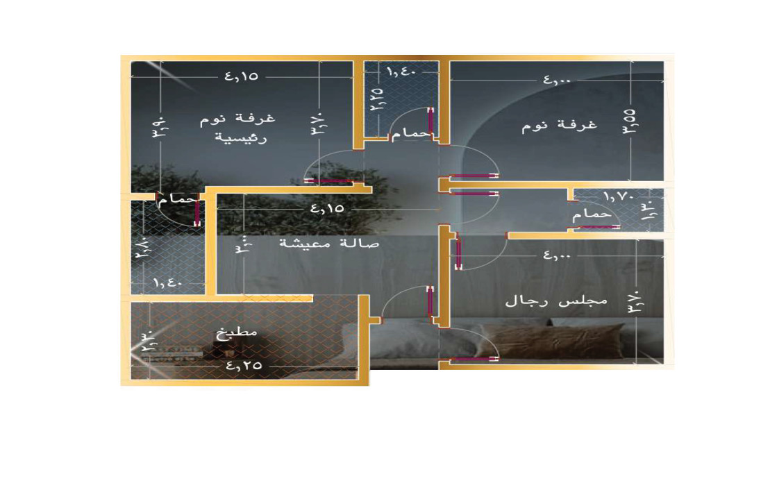 شقة ثلاث غرف بمساحة 94 م²