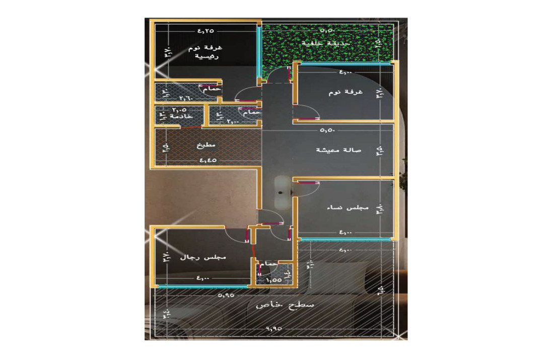 ملحق أربع غرف بمساحة 197 م²