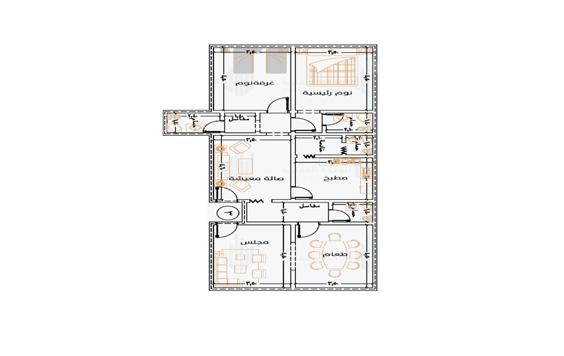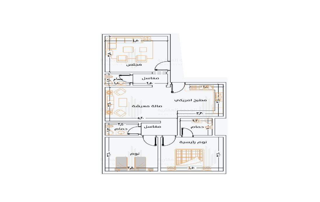 شقق 3 غرف أمامية (مدخلين) بمساحة 104 م²