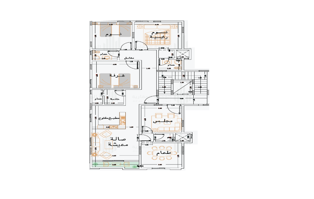 شقق 4 غرف داخلية (مدخلين) بمساحة 129 م²