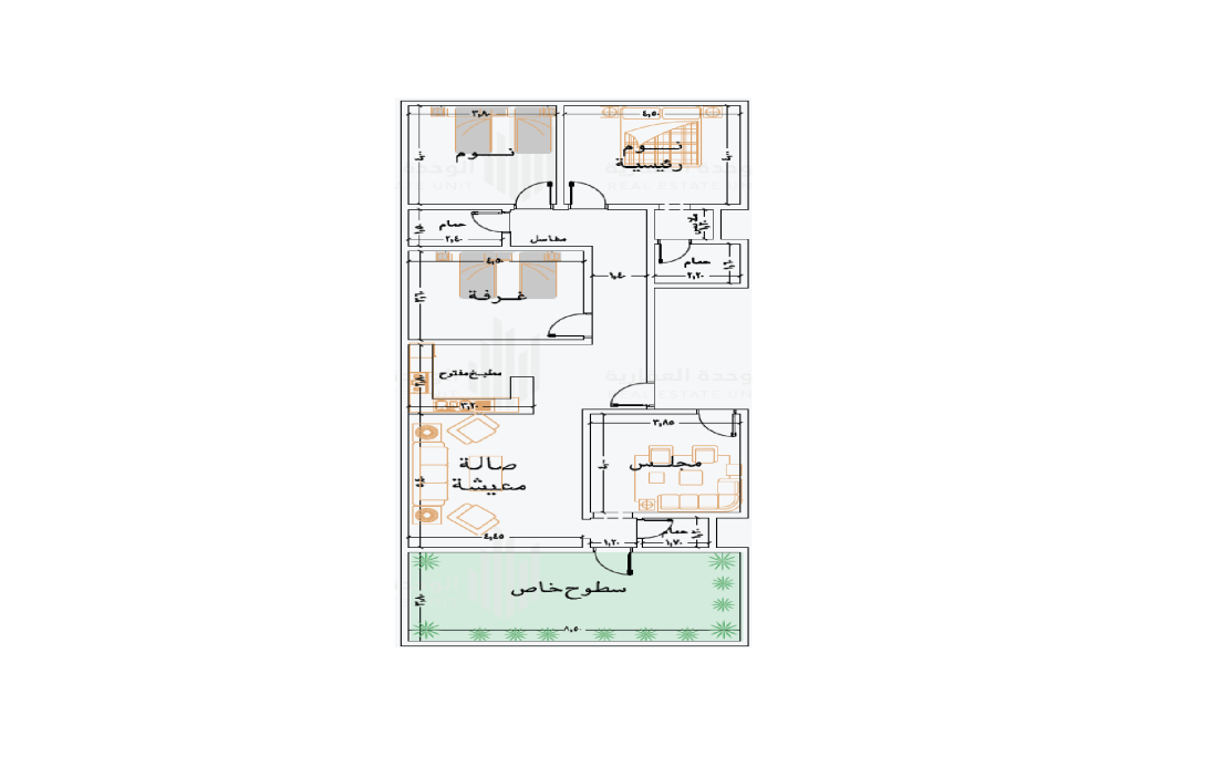 ملاحق 4 غرف (مدخلين + سطح) بإجمالي مساحة 180 م²